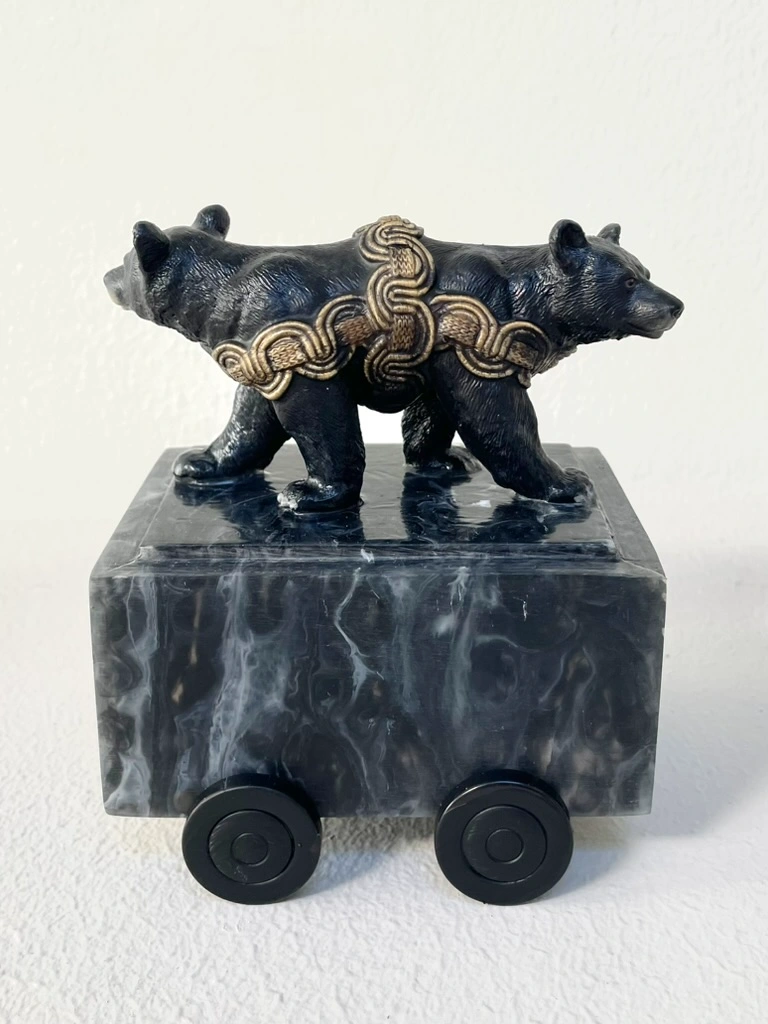Siamees van twee beren (epoxy) op kunststof sokkel