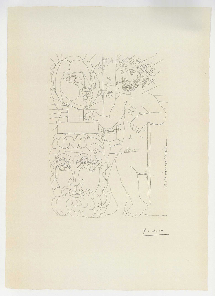 Tussen 1930 en 1937 werkte Pablo Picasso aan de legendarische Suite Vollard, een reeks van 100 grafische prenten die hij maakte in opdracht van kunsthandelaar Ambroise Vollard. De serie weerspiegelt Picasso’s meesterlijke beheersing van etstechnieken en biedt een diepgaand inzicht in zijn thematische en stilistische ontwikkeling. De prenten variëren van mythologische scènes en intieme momenten tussen beeldhouwer en model tot dramatische voorstellingen met de Minotaurus. De Suite Vollard wordt beschouwd als een sleutelwerk binnen Picasso’s grafische oeuvre en een mijlpaal in de moderne kunstgeschiedenis.